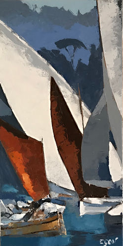 Passionné par la mer, et marin lui-même, c’est naturellement l’extrême variété des mers, côtes, rivages, et de leur lumière si particulière, qui est son thème favori. C’est aussi la vie des ports sous toutes les latitudes, lieux d’échanges et de liberté.